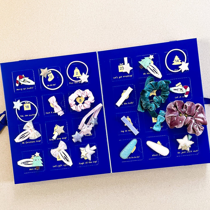 Замініть шоколад на чудові подарунки, які цього року будуть довговічними! Ідеальний різдвяний зворотний відлік для малюків, які люблять аксесуари! За кожними маленькими дверцятами ховається гарна заколка, пов'язка для волосся або гумка для волосся, ідеально підходять для носіння під час святкової підготовки та після неї!