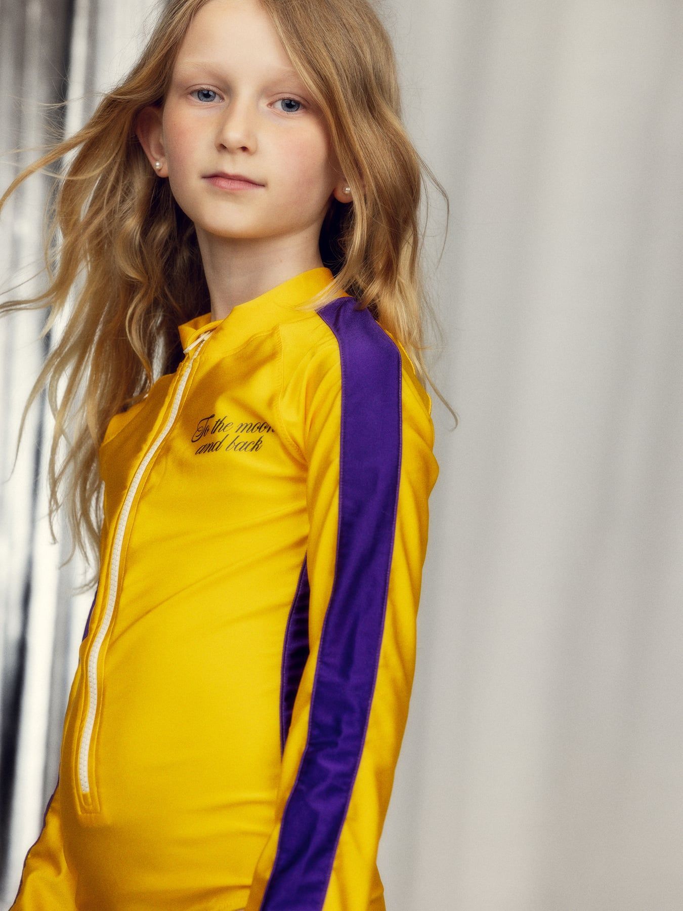 Купальник з довгими рукавами та захистом від ультрафіолету, виготовлений з 83% переробленого нейлону та 17% еластану. Високий комір та блискавка спереду для легкого одягання, контрастні реглан-вставки та принт на грудях «To the Moon» для комфортної гри.