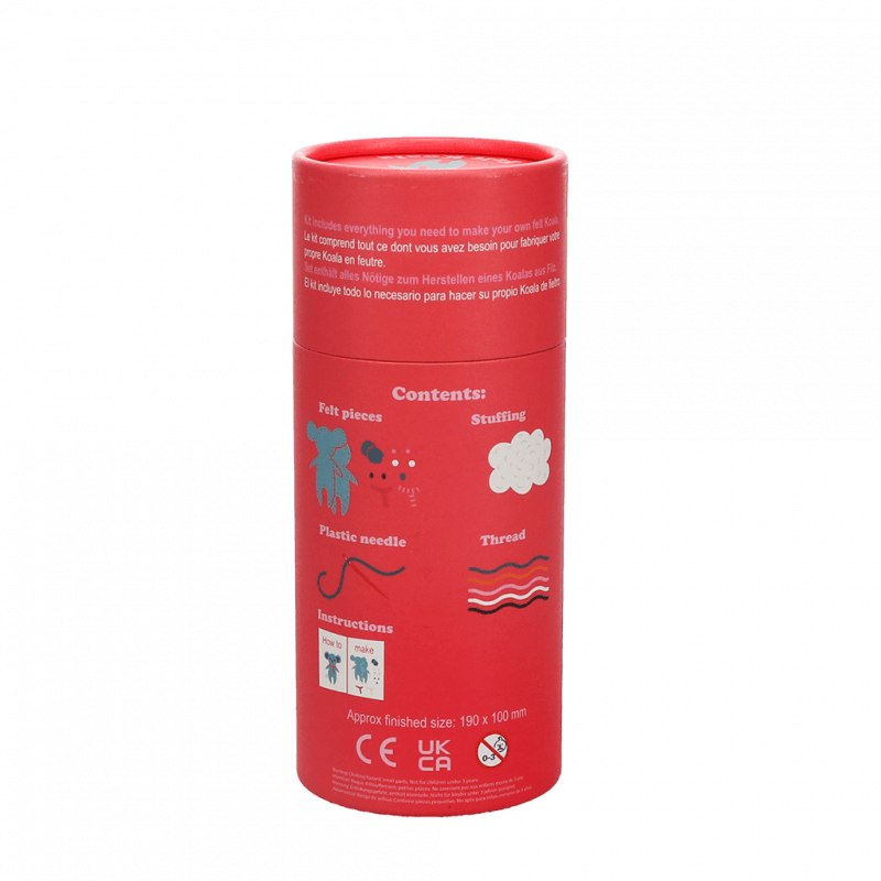 Цей набір для виробу з фетру – чудове знайомство з шиттям. Діти можуть створити нового компаньйона, зшивши власну коалу. Цей веселий набір для виробу постачається в чарівній картонній трубці, ідеально підходить для подарунка.