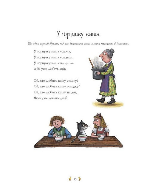 Відома на увесь світ збірка “Пісеньки та віршики матінки Гуски” містить традиційні британські пісеньки та віршики, які чудово підходять для спільного читання та веселого проведення часу. В неї увійшли такі творіння як “Три маленькі киці”, “Шалам-Балам”, “Інсі Вінсі павучатко” та багато інших. Крім того, книгу доповнили декілька непересічних й теплих історій від Емілі Грін.