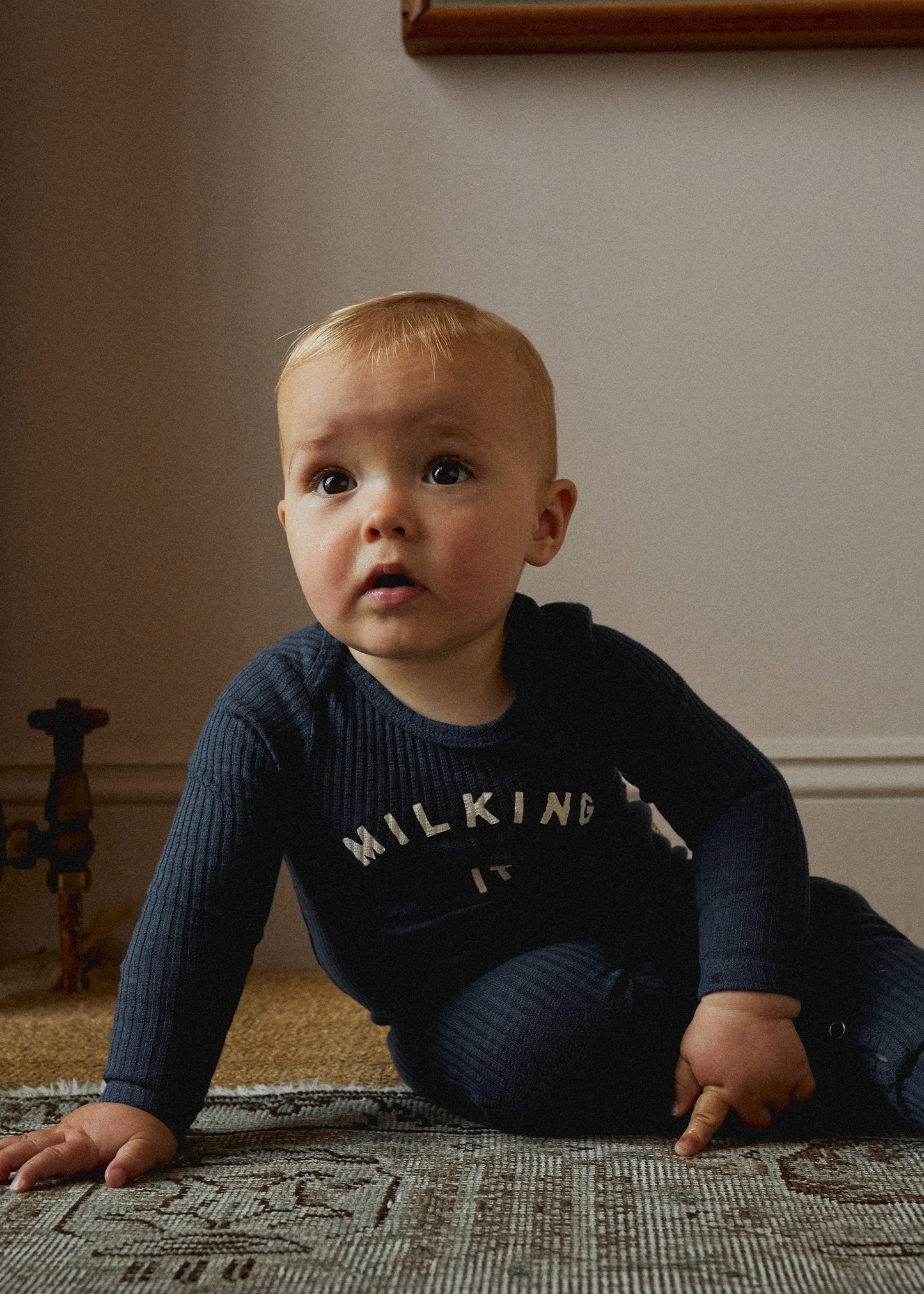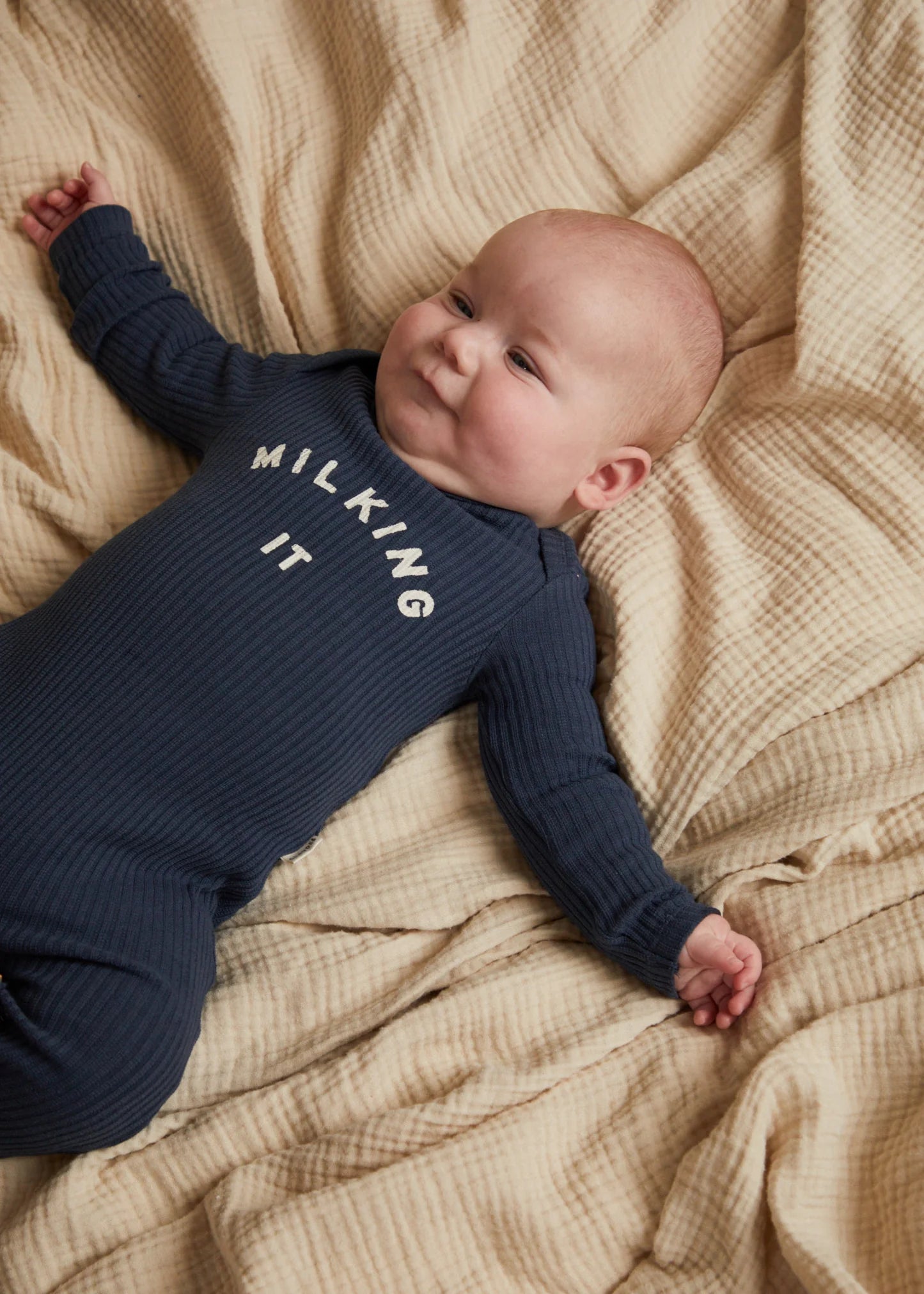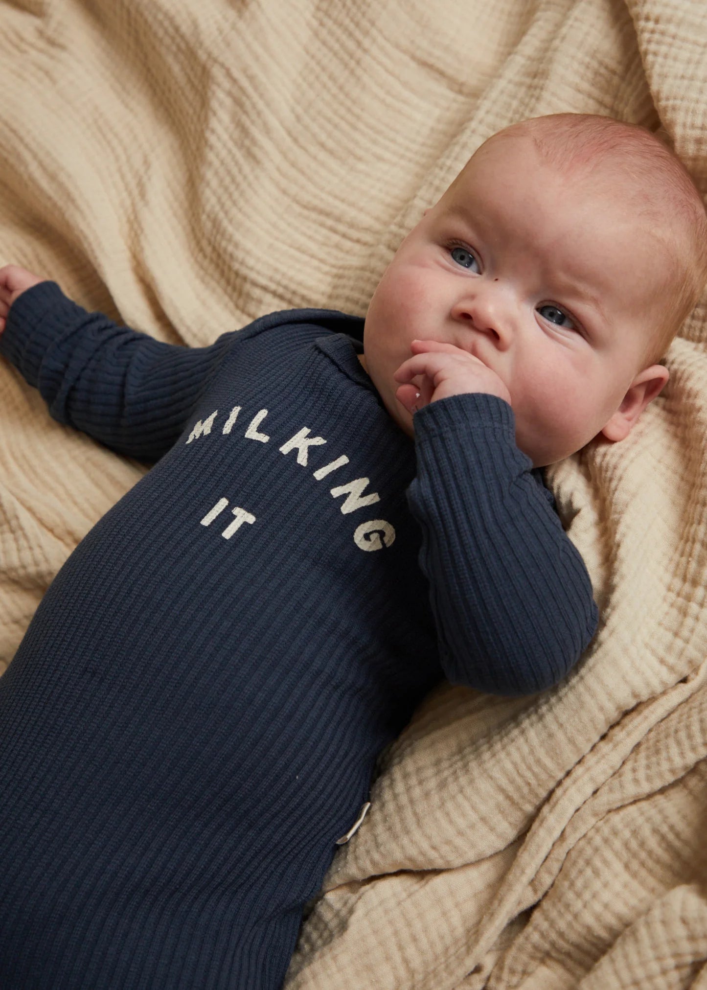 Відкрийте для себе комбінезон Milking It All-In-One від Claude & Co – обов’язковий елемент для вашої малечі. Цей комбінезон для сну виготовлений з 97% органічної бавовни та 3% еластану, що забезпечує м’яке та щільне прилягання, водночас дбайливий до ніжної шкіри та навколишнього середовища.