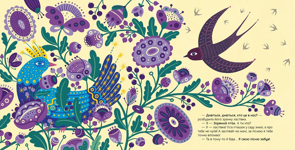 Та от біда – той птах ніяк не міг пригадати свою пісню. Кожен мешканець саду вчив його своєї мови, але жодна з них не пасувала Зоряному птаху. Ця книга лагідно пояснює важливість власного голосу. Це історія про шлях до свого коріння і себе справжнього попри різноголосі думки оточення.