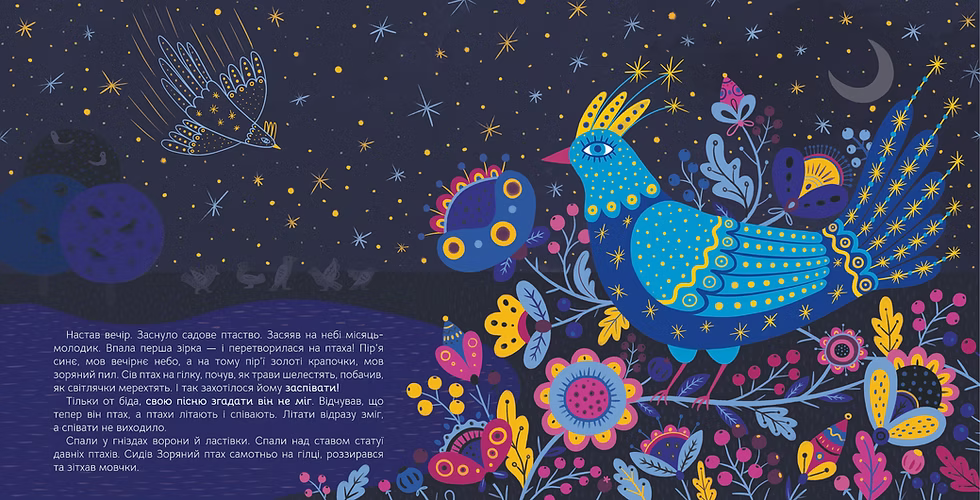 У вечірньому саду впала перша зірка і перетворилася на Зоряного птаха.