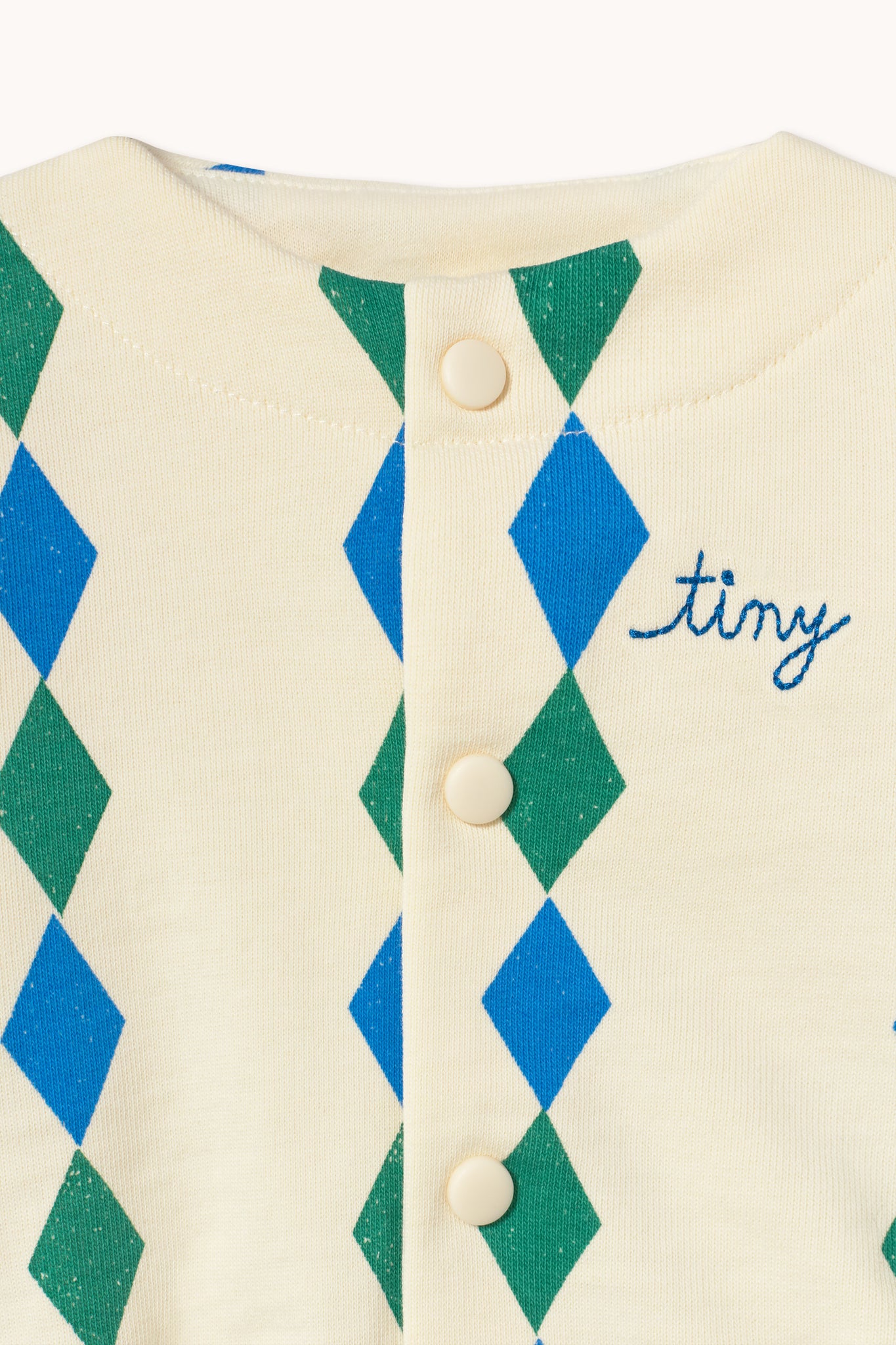 Ця куртка-світшот з принтом Diamonds, виготовлена зі 100% органічної бавовни, має простий, але стильний силует з круглим вирізом, застібкою на кнопках спереду та еластичними краями. Поєднуйте її з відповідними штанами, щоб створити чарівний і стильний образ.