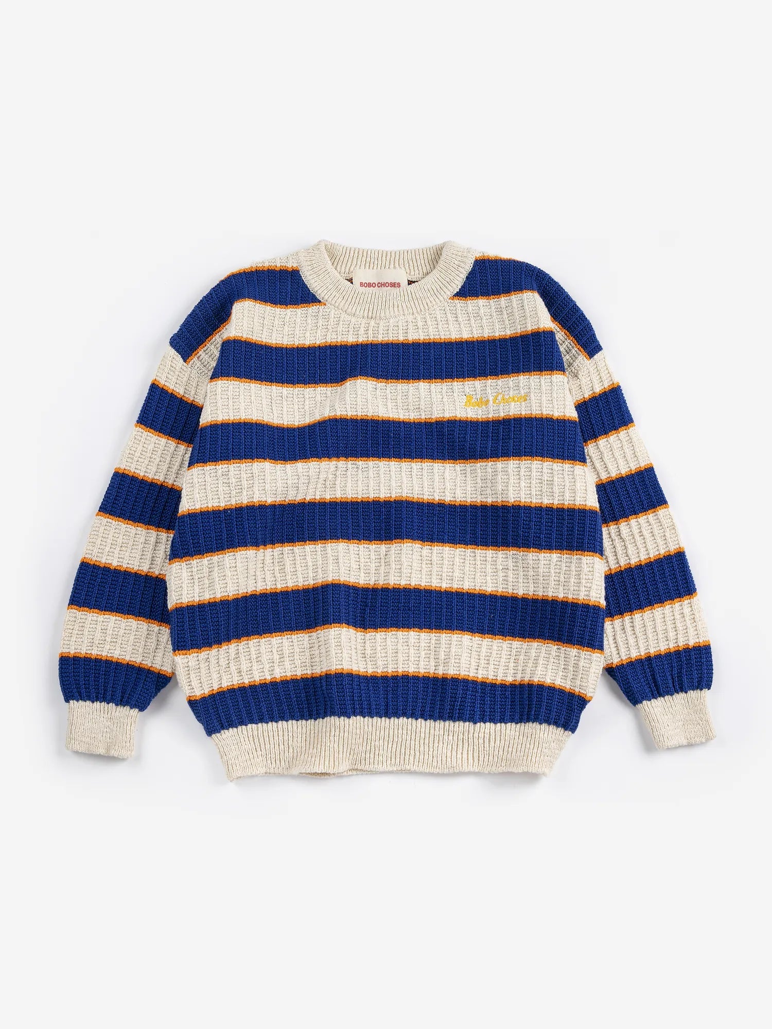 Синій джемпер. Довгі рукави, спущені плечі, ребристі манжети, вишивка, текстурована в'язка, вільний крій, ребристий низ та круглий виріз горловини. Виготовлено в Іспанії.