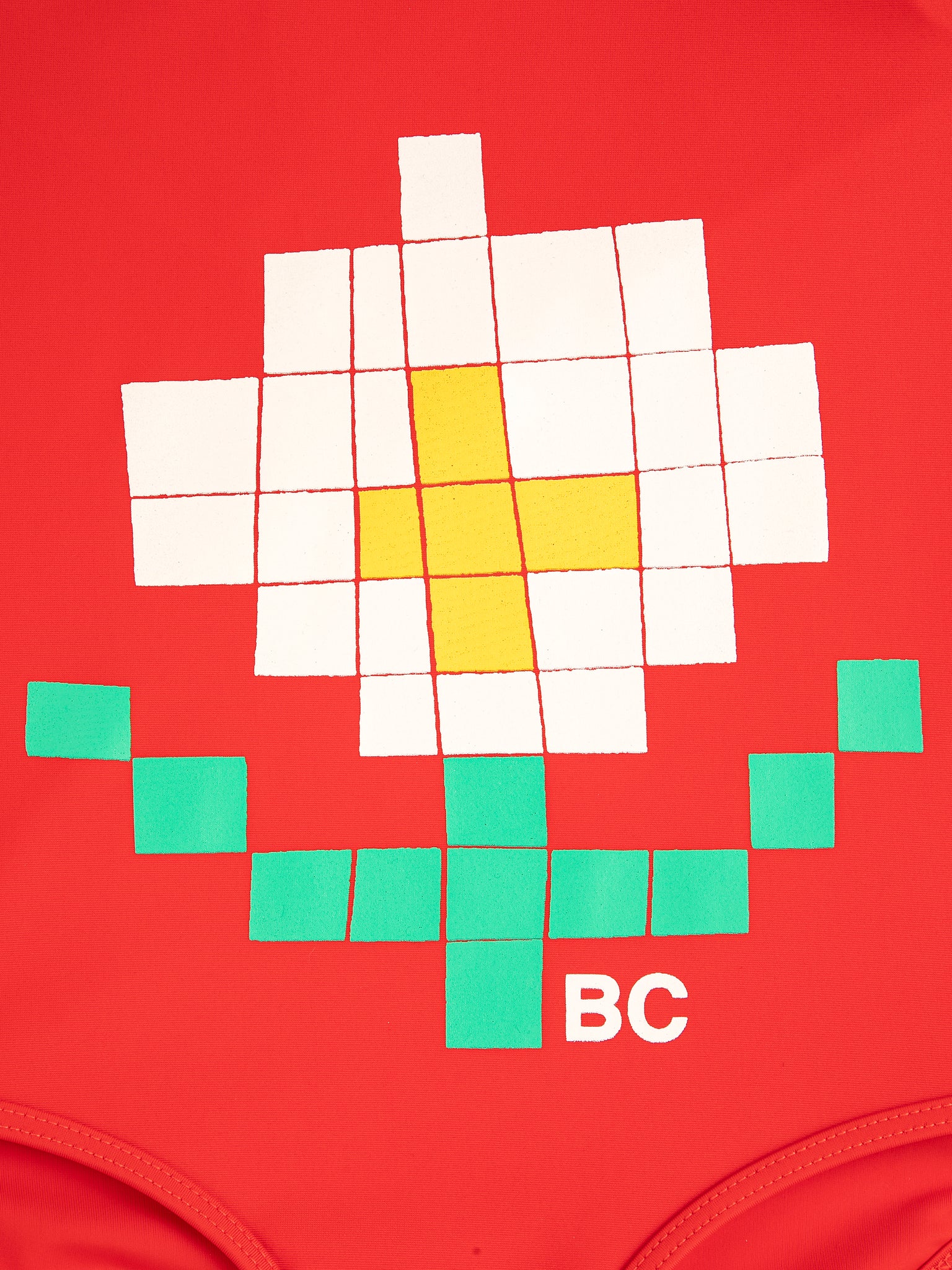 Червоний купальник з принтом квітки - ромашки. Створений з урахуванням облягаючого крою та захисту від сонячних променів. Вироблено в Іспанії.