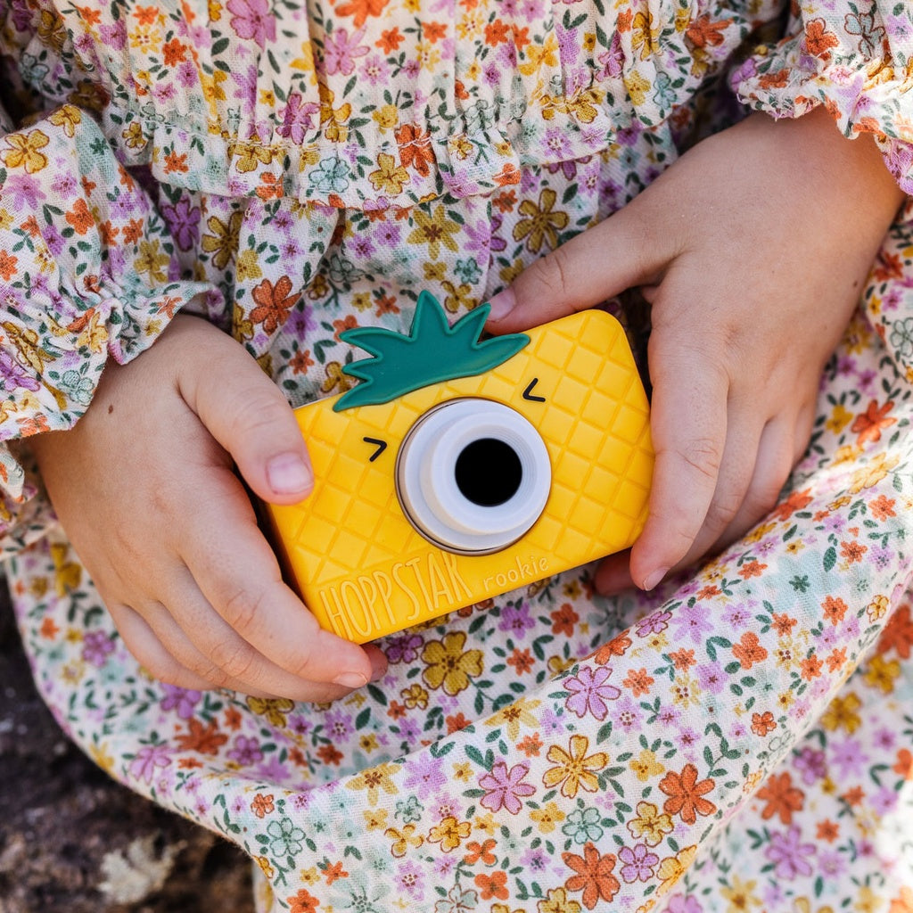 Цифрова фотокамера Rookie Pina colada ідеальна для знайомства малюків із дивовижним світом фотографії. Простий у використанні девайс розвиває спостережливість, творчі здібності, служить дитині засобом самовираження. Знімає фото й відео, має вбудований редактор із рамками, фільтрами, розпізнаванням облич. Ергономічна панель управління з великими кнопками легко освоюється малечею. Камера «Піна колада Rookie» поставляється з ремінцем, зручним силіконовим чохлом оригінального дизайну, SD-картою об'ємом 16 Гб (можна зберігати 1 000 фотографій або 2 години відео). Заряджається через USB (теж в комплекті). Девайс розроблений австрійським брендом Hoppstar. Автори камери удостоєні престижної премії Junge Wirtschaft, яку в Австрії щорічно вручають молодим підприємцям за видатні успіхи.