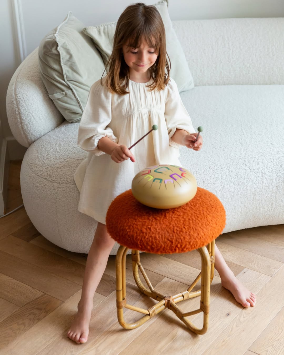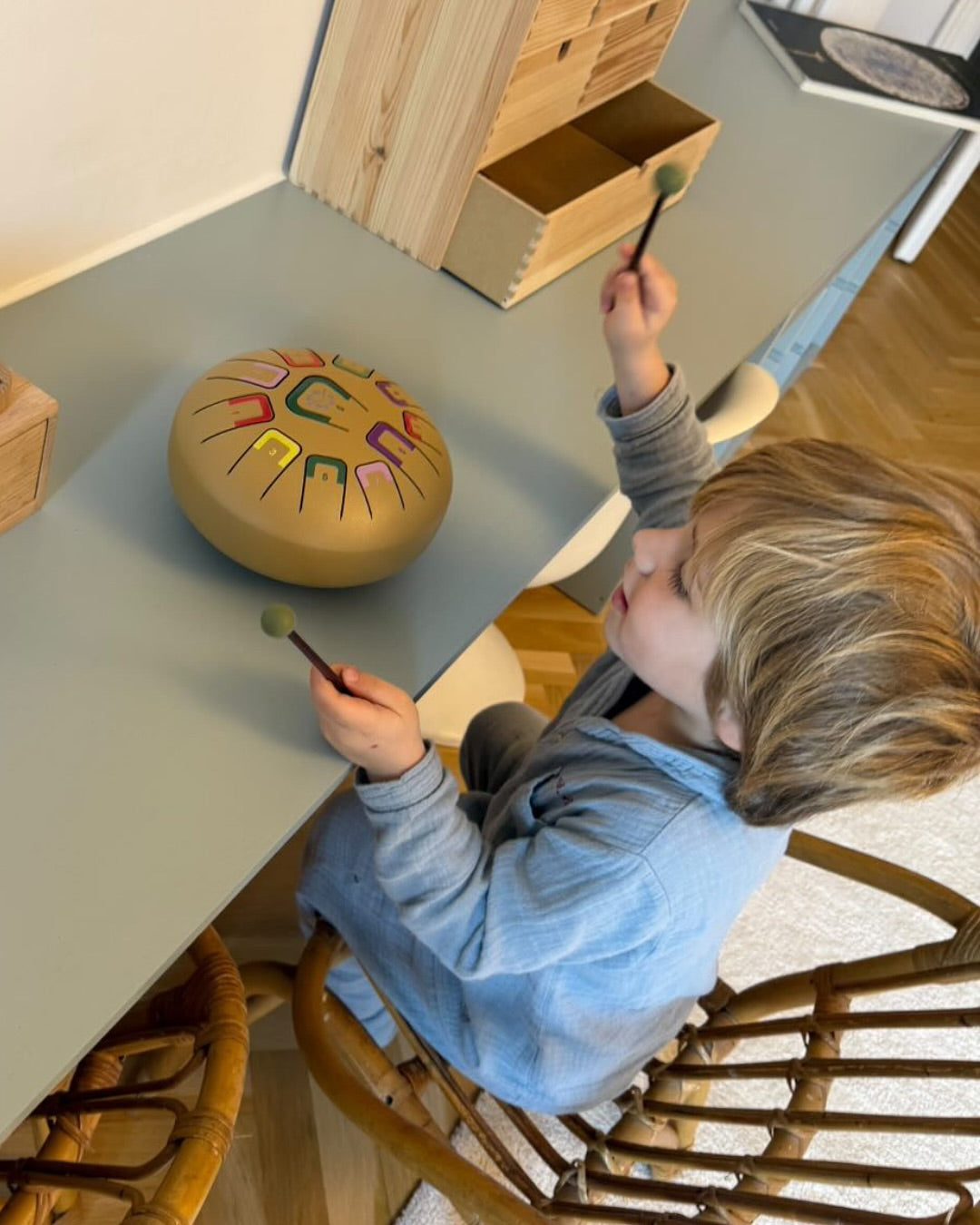 Щоб поринути у музичний світ Tambu, потрібні лише бажання, натхнення і пелюстковий барабан. Просте кодування нот, спеціальна форма барабана та легкі дотики створюють приємну музику, яка надихає дітей і дорослих. Пелюстковий барабан на 8 пелюсток та 11 нот (золотого кольору) дарує можливість створювати мелодії інтуїтивно, без заучування нот. У власному темпі дитина розвиває музичний слух, тренує концентрацію та емоційну чутливість. А для дорослих гра на такому барабані стане тихою паузою, адже музика Tambu розслабляє та заспокоює. Із пелюстковим барабаном будь-яка мандрівка буде веселішою, а домашній відпочинок ー наповненим теплом і творчістю.