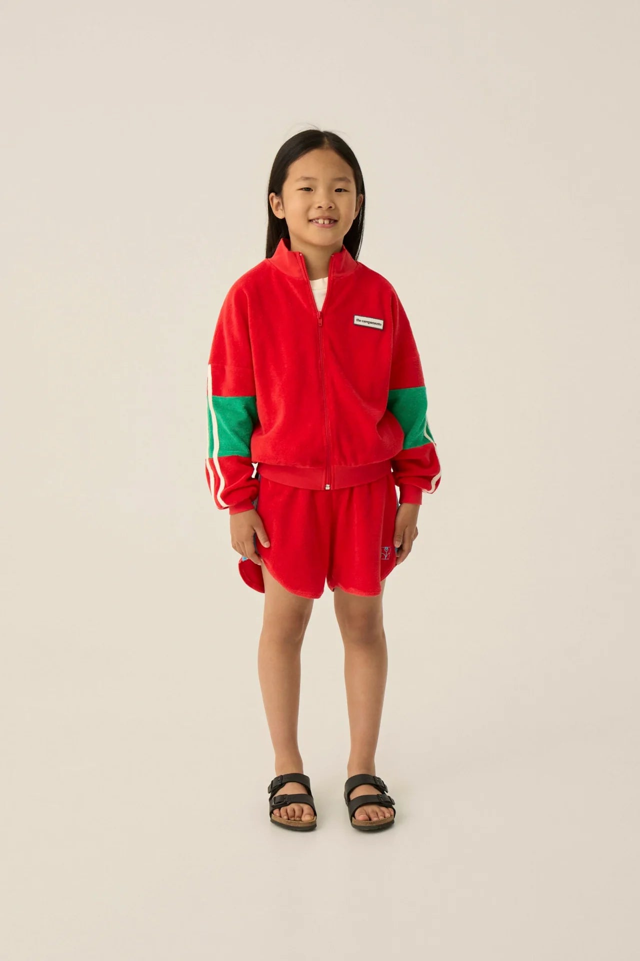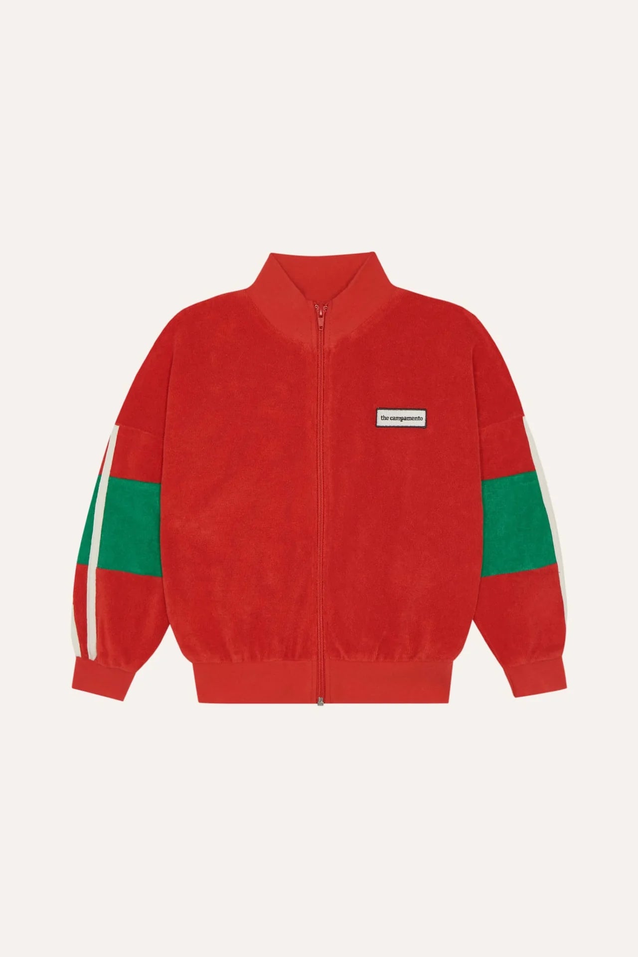 Ретро-стиль у цій червоній толстовці з контрастним зеленим кольором. З оверсайз крій та ребристими манжетами та коміром для більшого комфорту, вона ідеально підходить для літніх післяобідніх годин. Довгі рукави та оверсайз крій. Закруглений комір з ребристих вставок для більшого комфорту. Фліс 100% бавовна. Виготовлено в Португалії.