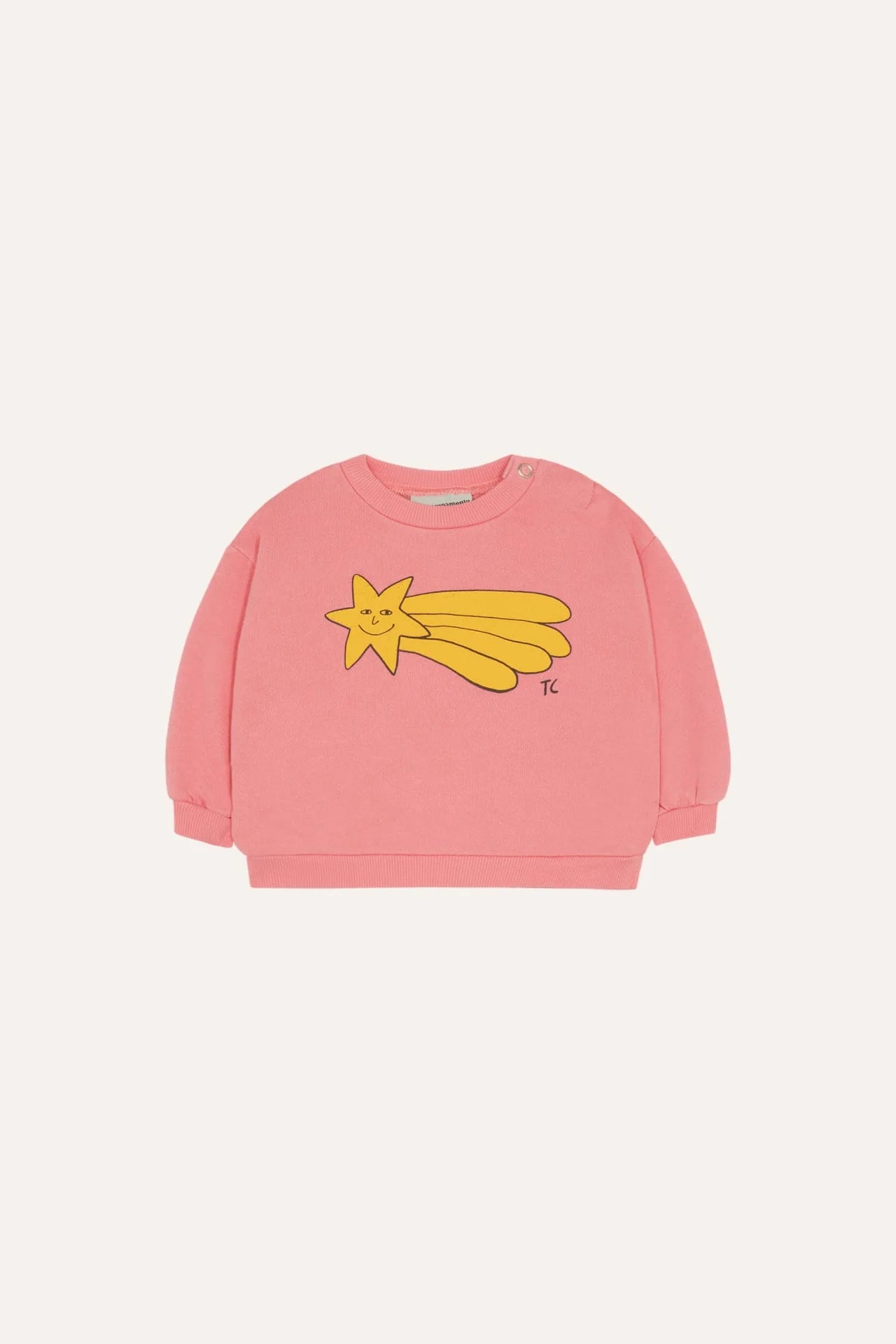 Светр із кумедним принтом падаючої зірки. З оверсайз крій та ребристими манжетами та коміром для більшого комфорту. Це дуже універсальний одяг, який доповнить будь-який літній образ. Довгі рукави та оверсайз крій. Закруглений комір з ребристих манжетів та кнопки на плечах для більшого комфорту. Фліс, 100% органічна бавовна GOTS. Виготовлено в Португалії.